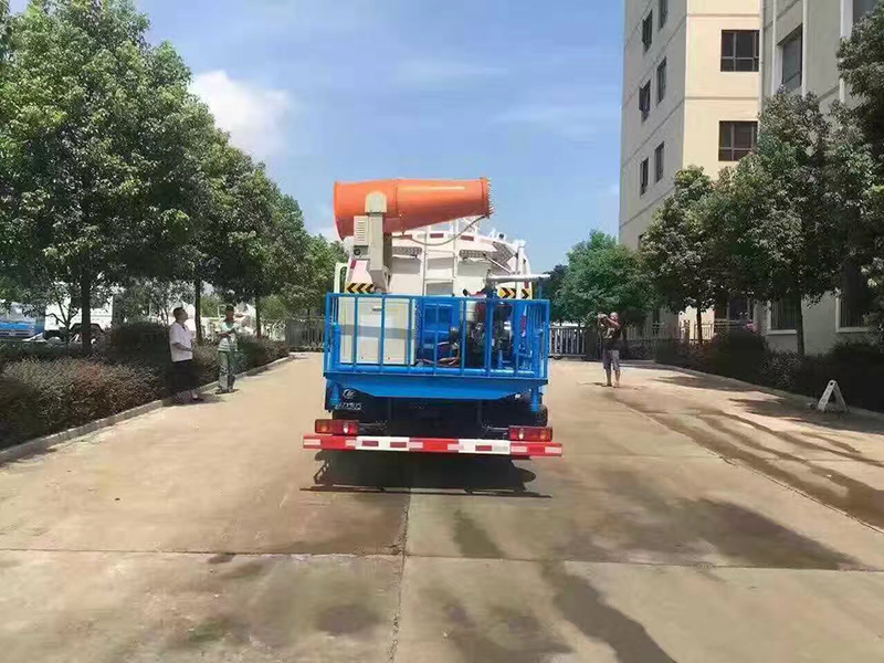 一臺“霧炮”灑水車可噴灑100多米�!办F炮”又叫環(huán)保除塵風送式噴霧機,安裝在車的后半部分�!办F炮”的原理是在液泵噴水后,利用風機將水噴灑出去,能噴灑120米遠、90米高。向天空噴灑水霧,達到抑制揚塵、綠化除塵等效果。